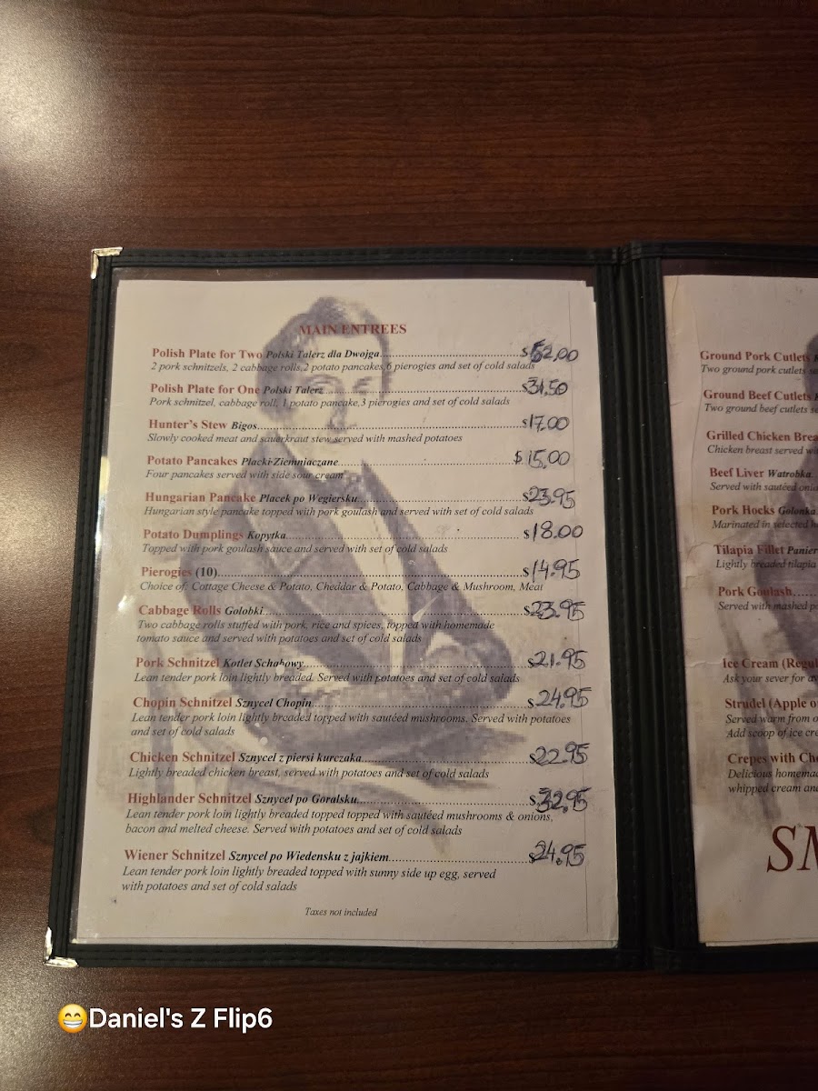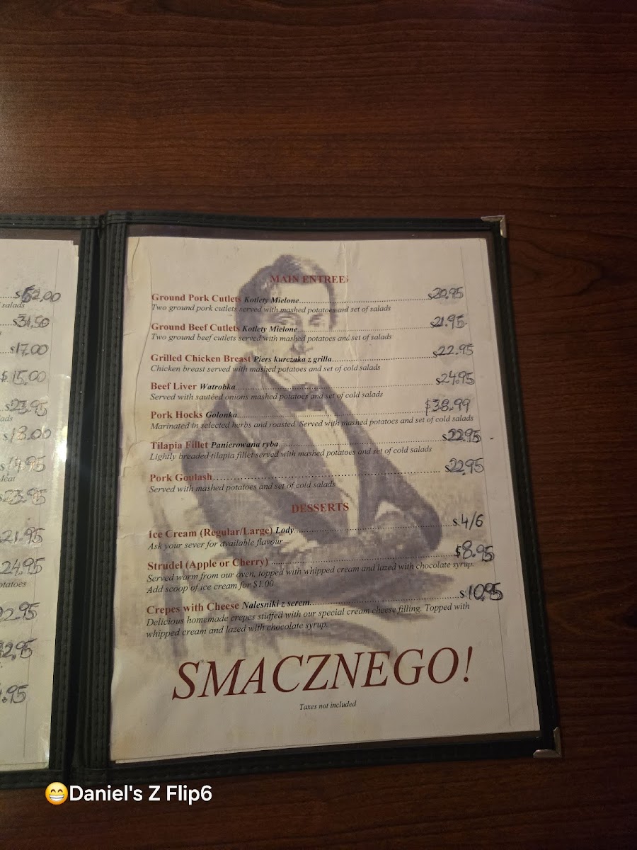For mains, the Polish Plate stands out, brimming with two pork schnitzels, four pierogies, and a medley of cabbage rolls that make for a perfect shareable feast. The Hunter’s Stew offers a heartwarming experience, deeply flavored with sauerkraut and paired with fluffy mashed potatoes.